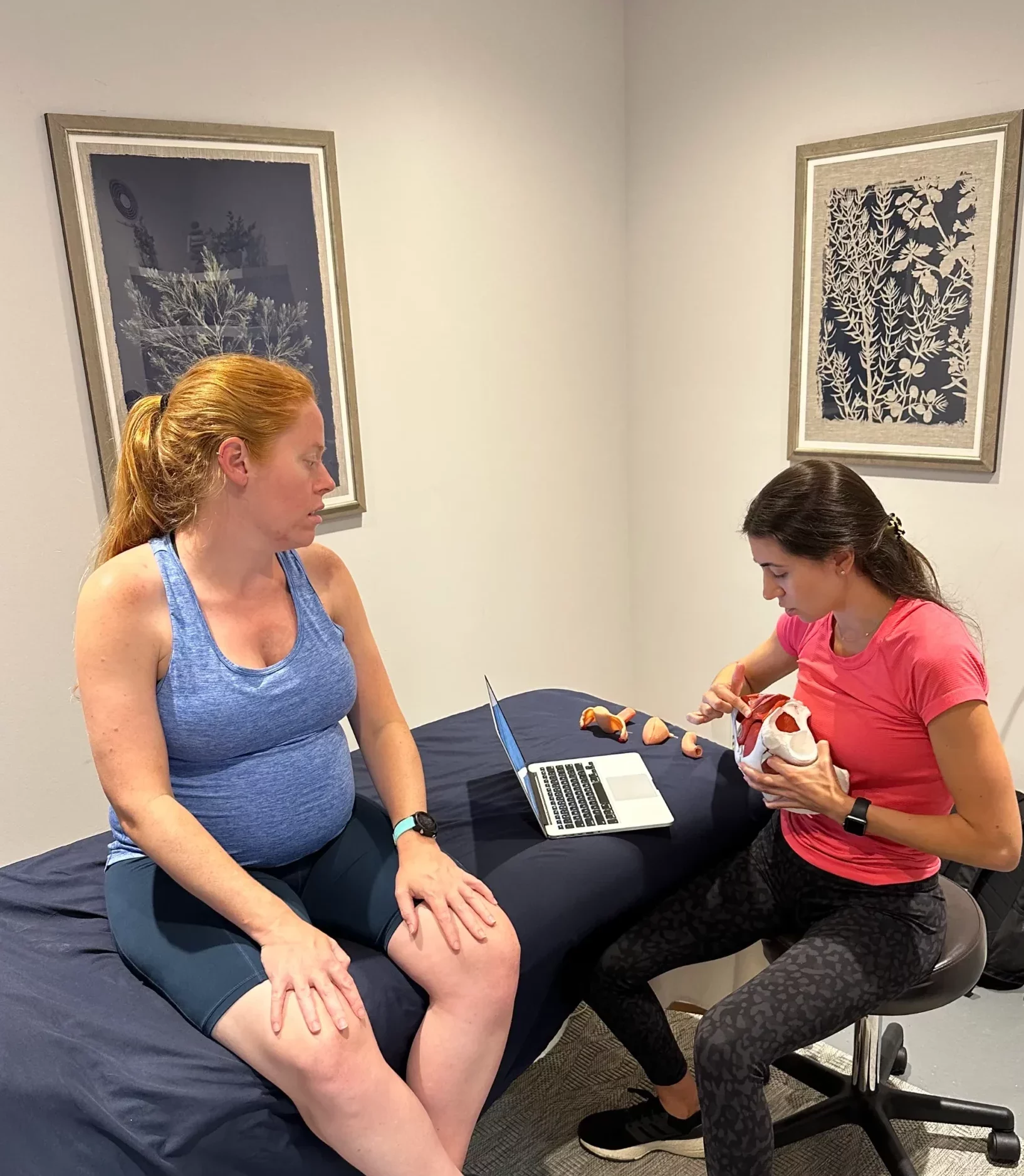 60-minute thorough evaluation, reviewing your medical history and holistic assessment of entire body. Although we are specialized in assessing the pelvic floor, we will only assess what you feel comfortable with.